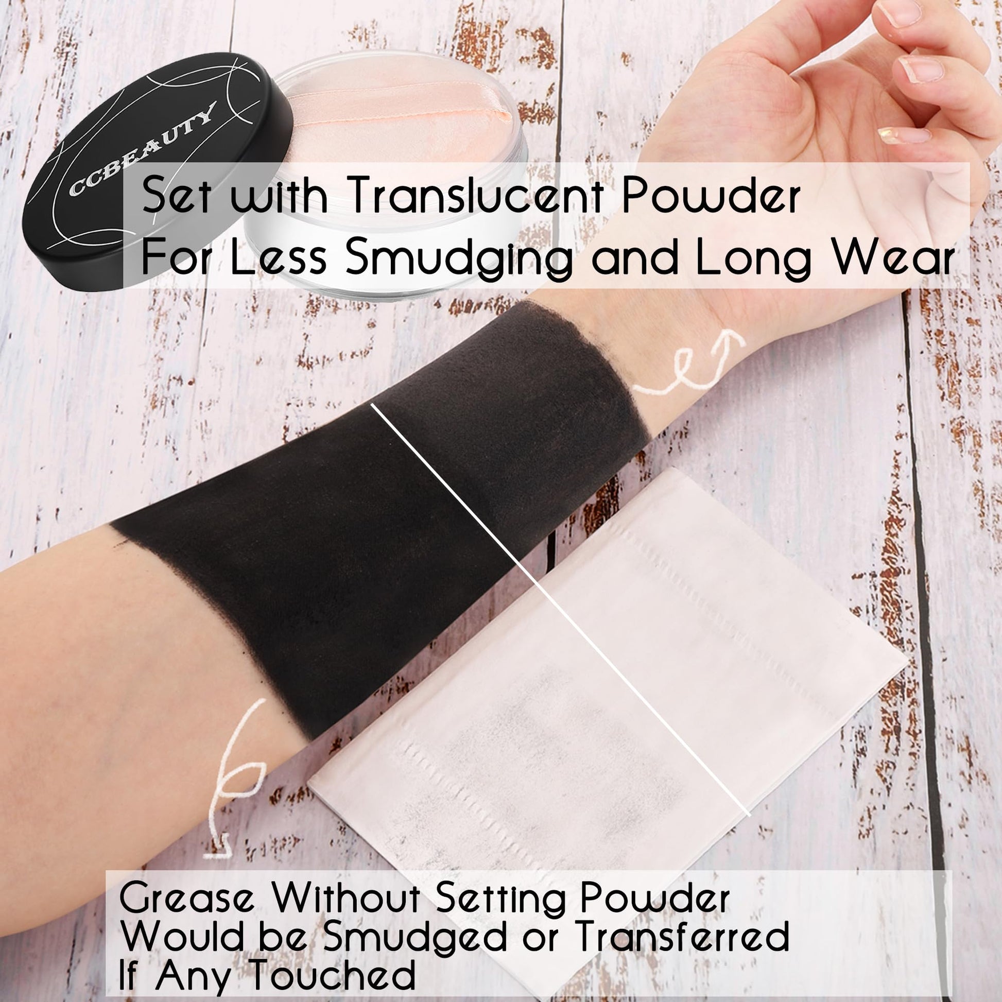 - HIGH PIGMENTED & WATERPROOF & NEVER DRY - Excellent full coverage with flawless and waterproof,sweat-proof on skin. It takes a while to dry but NEVER DRY OUT completely due to creamy consistency formula as any professional cream makeup, but it doesn't flake off after hours or wearing due to this creaminess, and stays put in hot weather. Highly recommend to seal with LOOSE TRANSLUCENT POWDER after applying, to get quick dry effects and longer wear, less smudging or transferring.