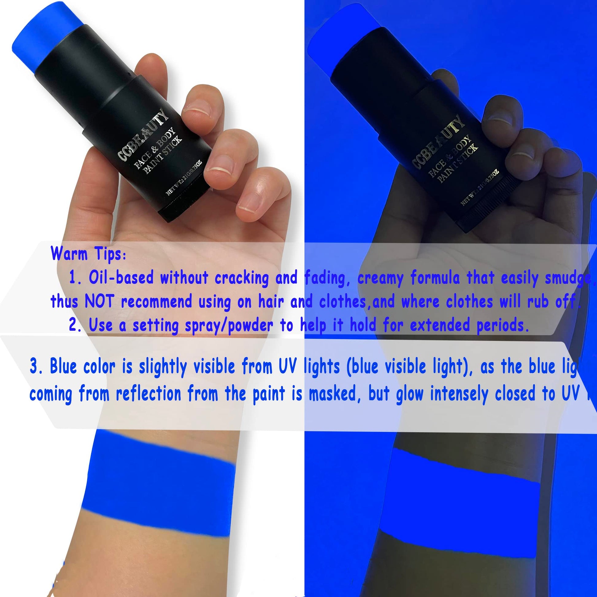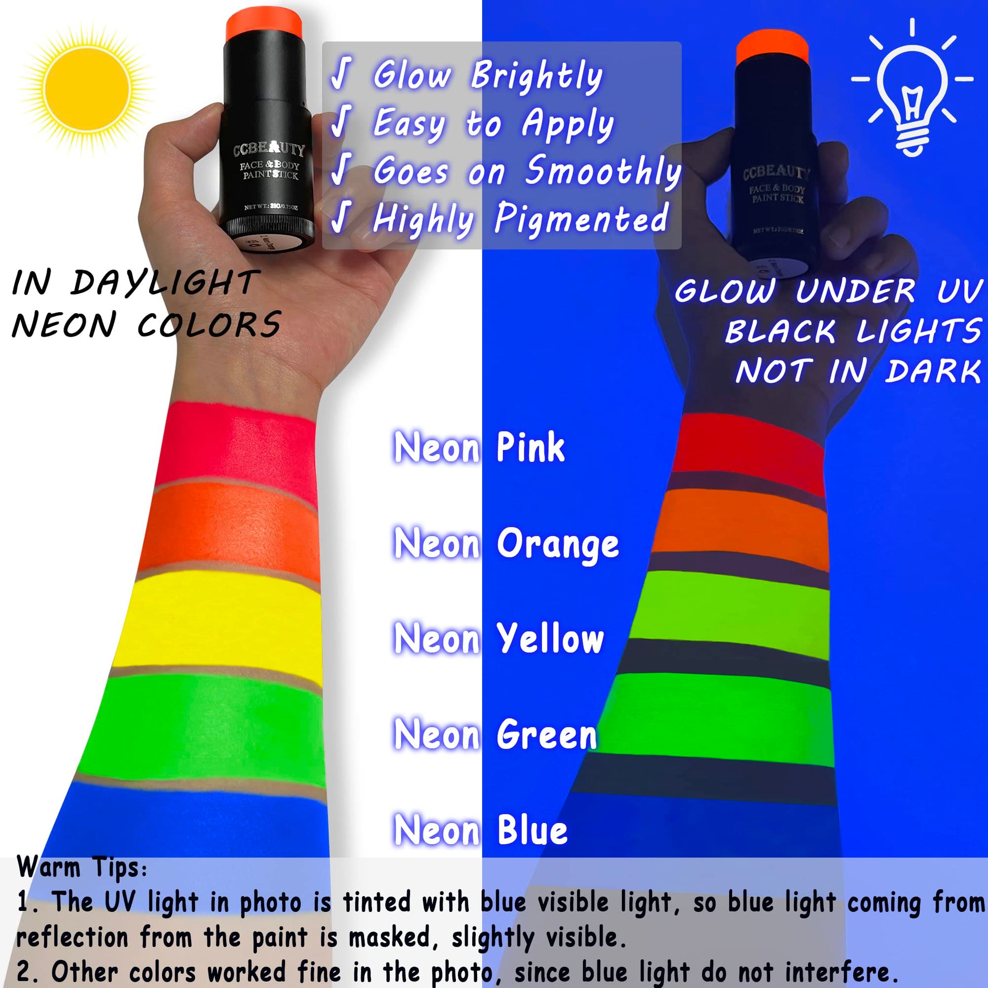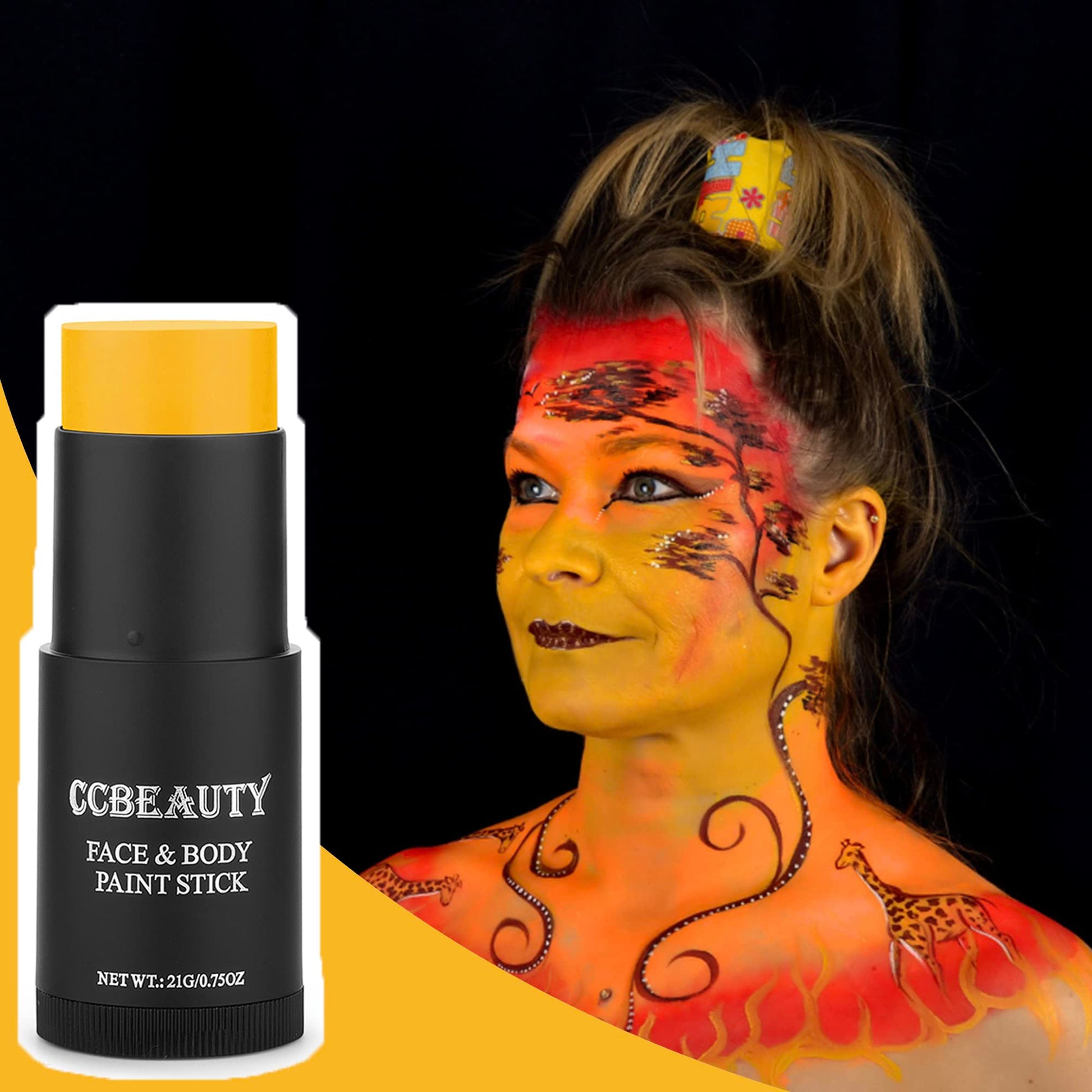 - 💗PRO FACE BODY PAINT STICK - CCbeauty's face and body paint sticks are manufactured using cosmetic grade ingredients, infused with Vitamin E and Aloe Vera. Provides high pigments to deliver you total full coverage with velvety consistency and intense colors payoff that will last you all day. Buildable, blendable cream formula with extreme long wear. Crack-proof, crease-proof, fade-proof, looks almost like second skin when wearing it.