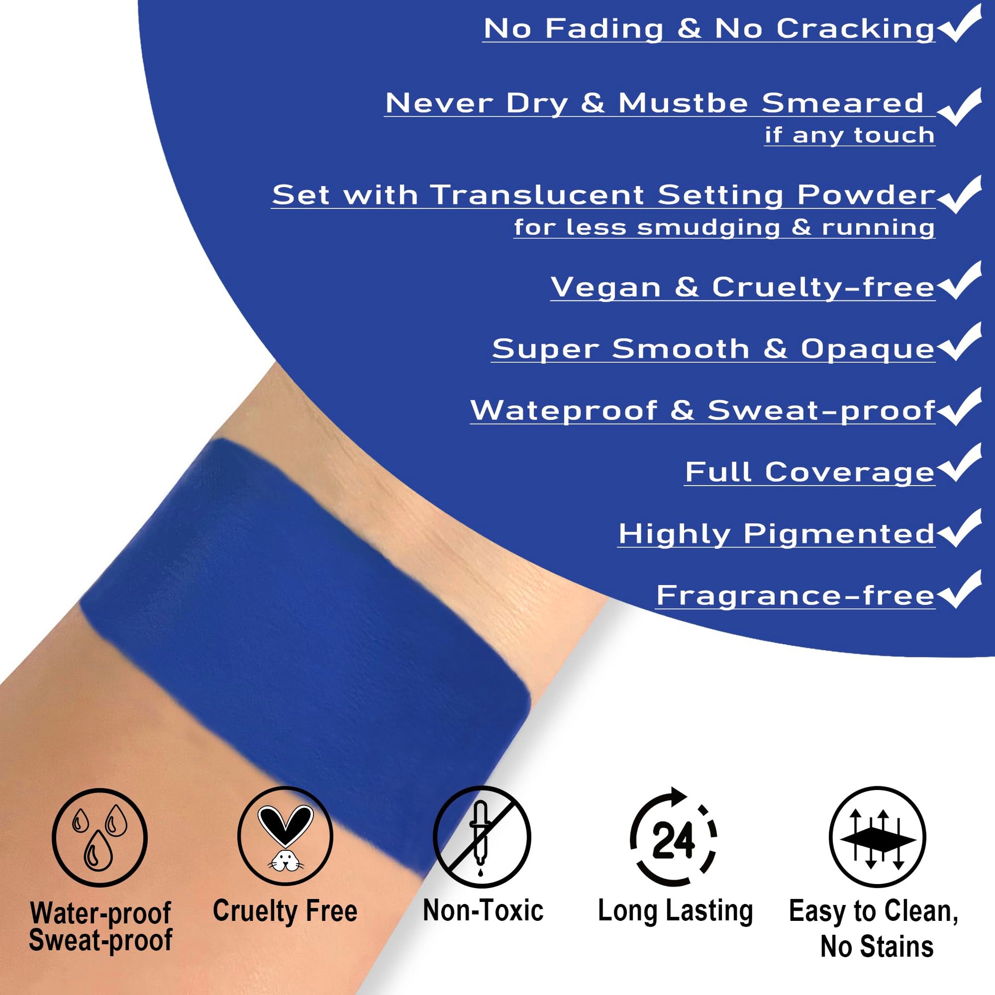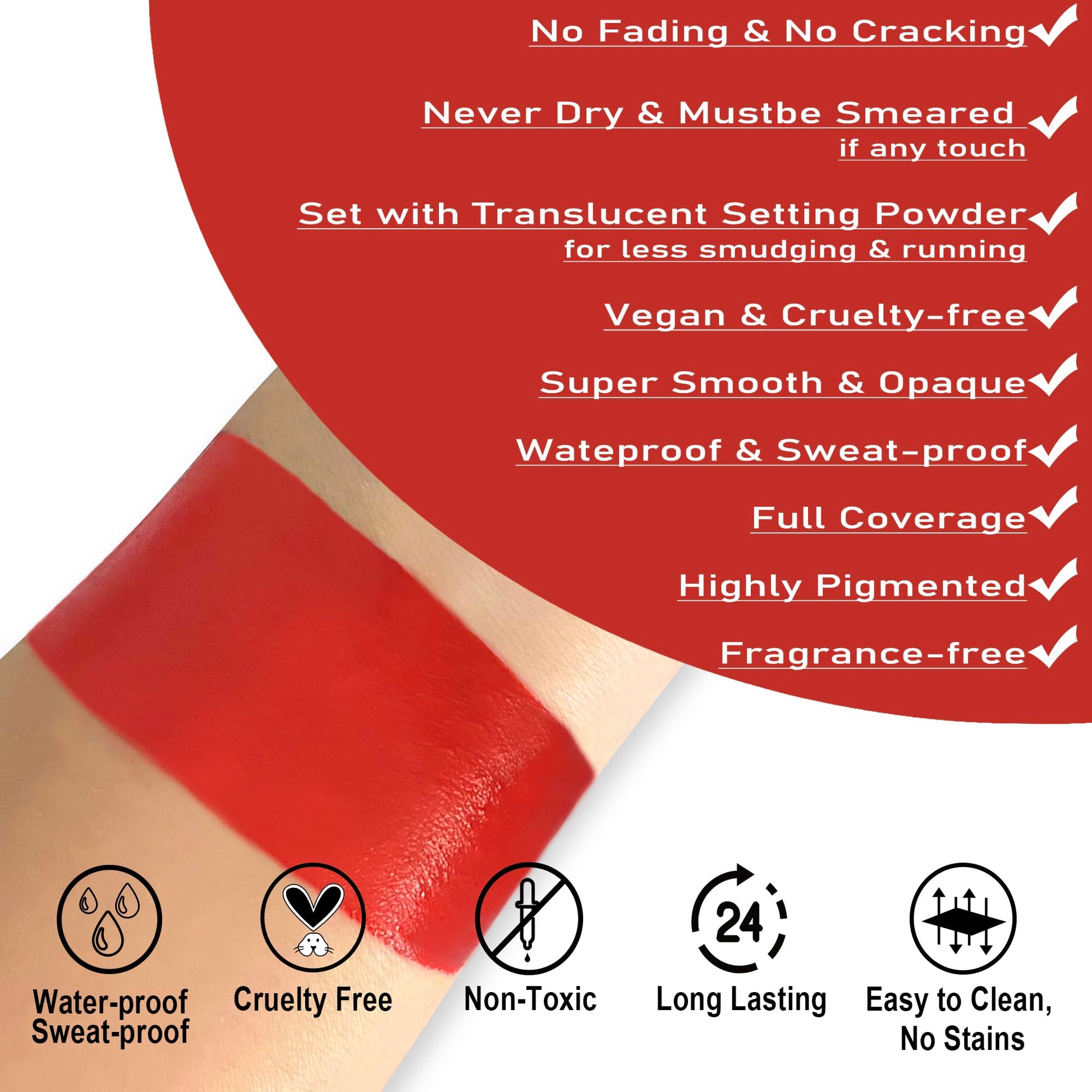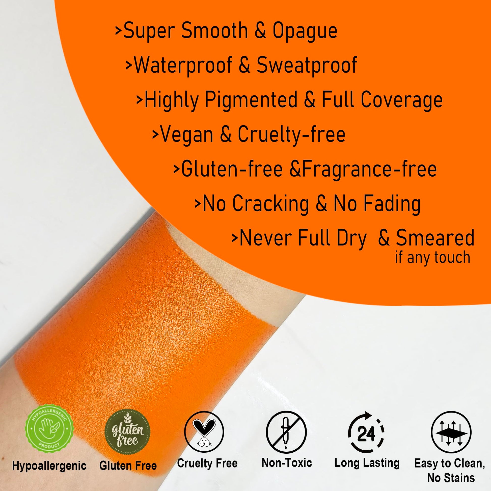 - 💗HIGH PIGMENTED & WATERPROOF - All face paint colors are excellent full coverage with flawless, only takes one pass to fully cover the skin, highly pigment and waterproof, sweat-proof. As with any professional grease cream makeup, it NEVER DRIES OUT completely like water-activated paint. We highly recommend to seal it with translucent powder to make it get long wear and less transferring and smudging, help last hours at a hot convention.