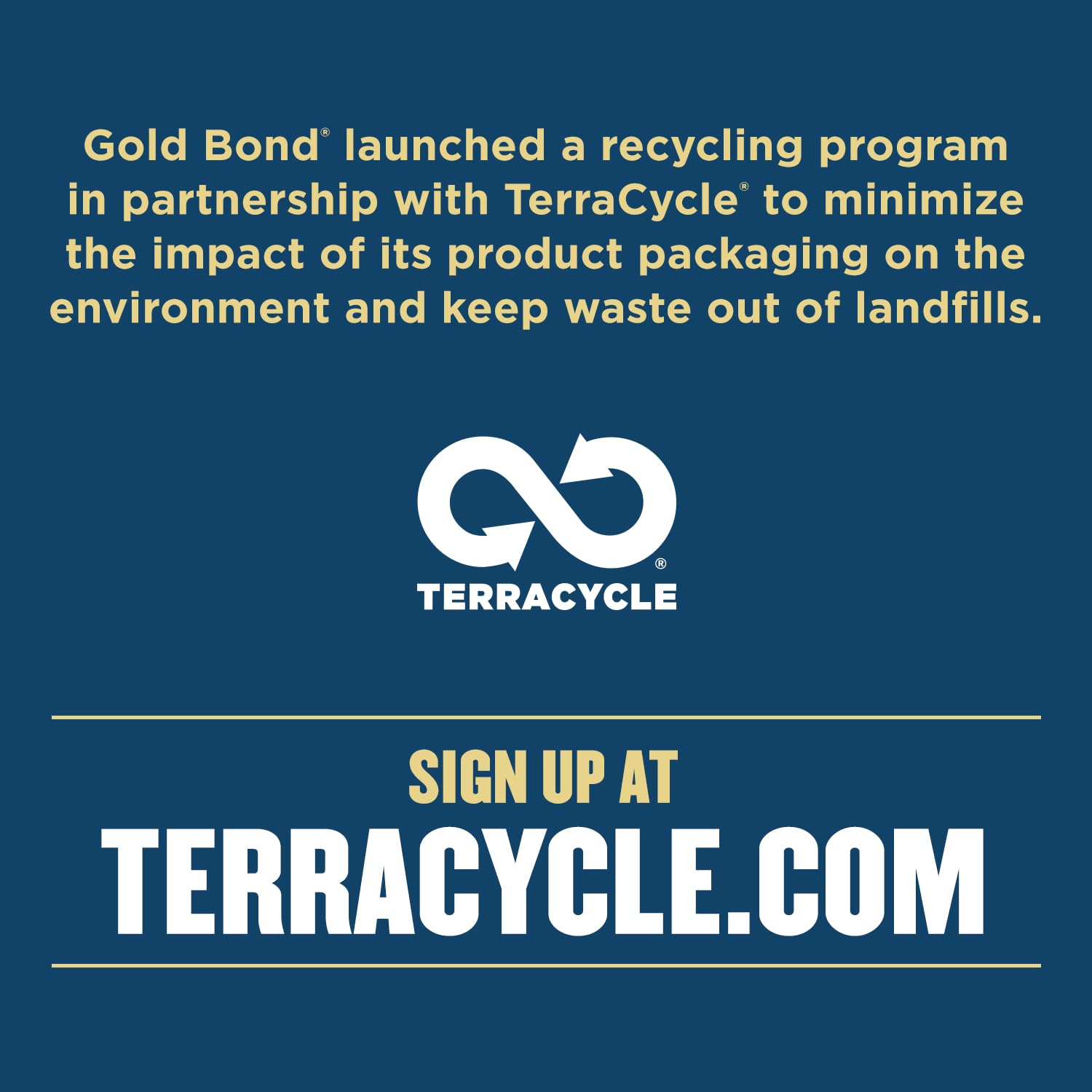 - Create a TerraCycle account and start recycling your empty Gold Bond packaging