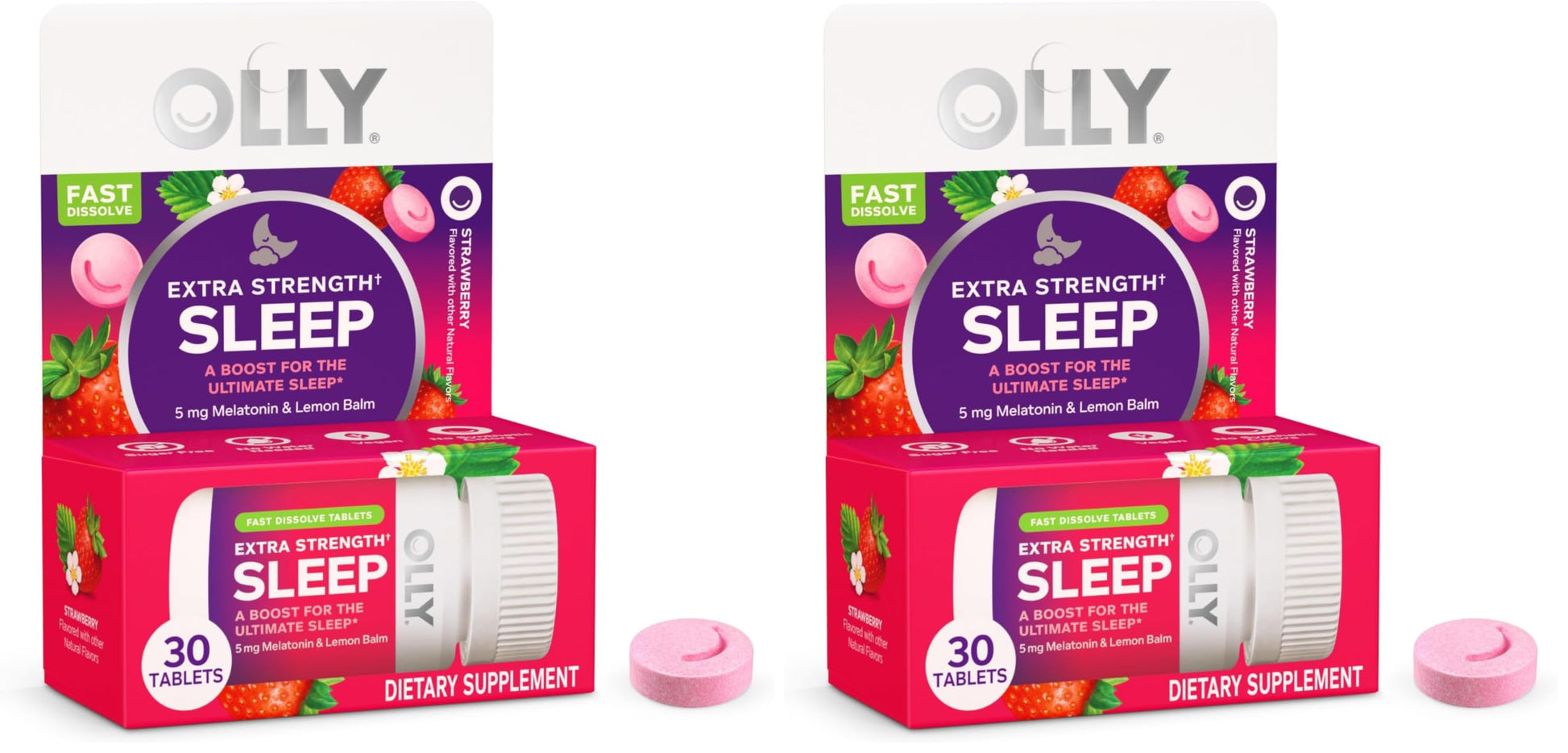 OLLY Extra Strength Sleep Fast Dissolve Tablets, 5mg Melatonin, Vegan, Strawberry - 30ct