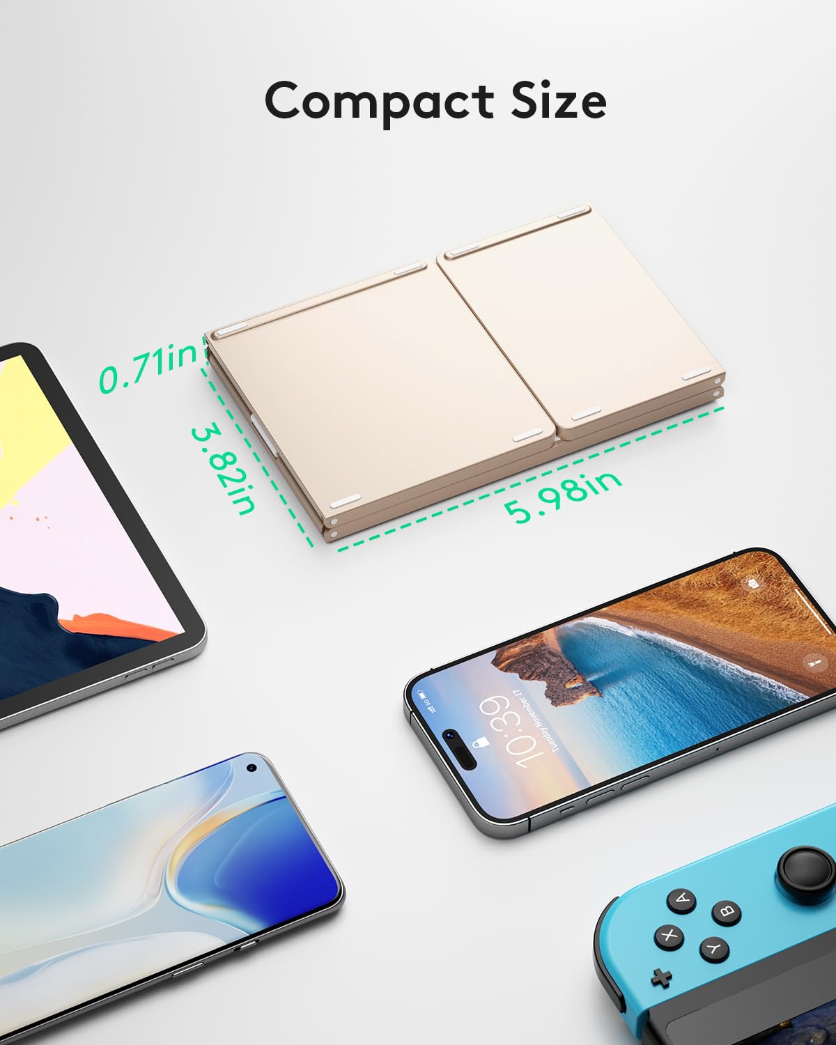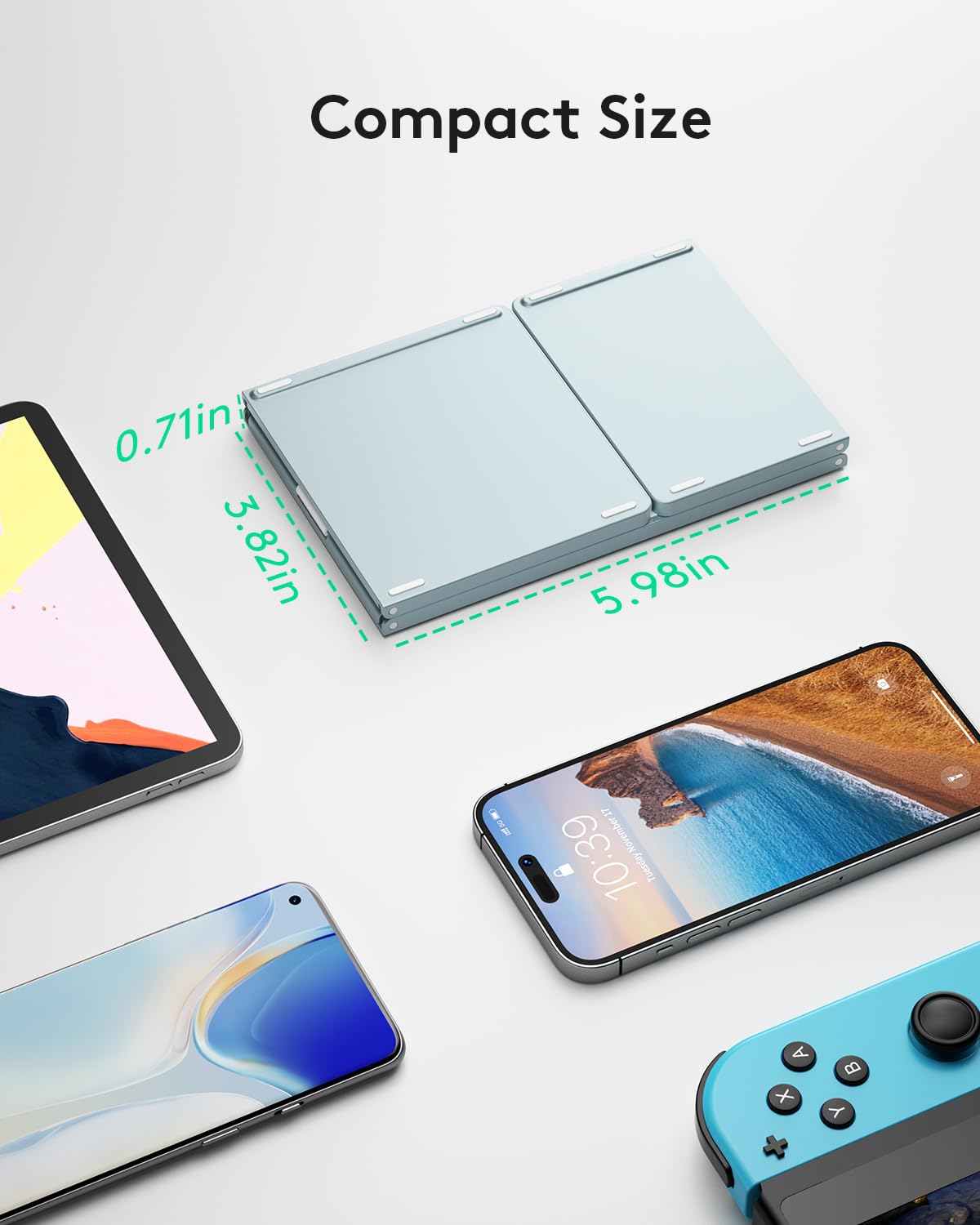 - 【Exquisite & Lightweight Portable Keyboard】Dark Black matte exterior, made of ABS+PC material, lightweight but sturdy, without fear of daily wear and scratches. The elegant matte design, excellent touch and clean look make it a perfect match for your tablet, phone and laptop. Only 5.53-ounce, palm-sized keyboard can be folded up and carried around. Provide you with maximum convenience with minimal weight and size. It must be a good choice for editors!