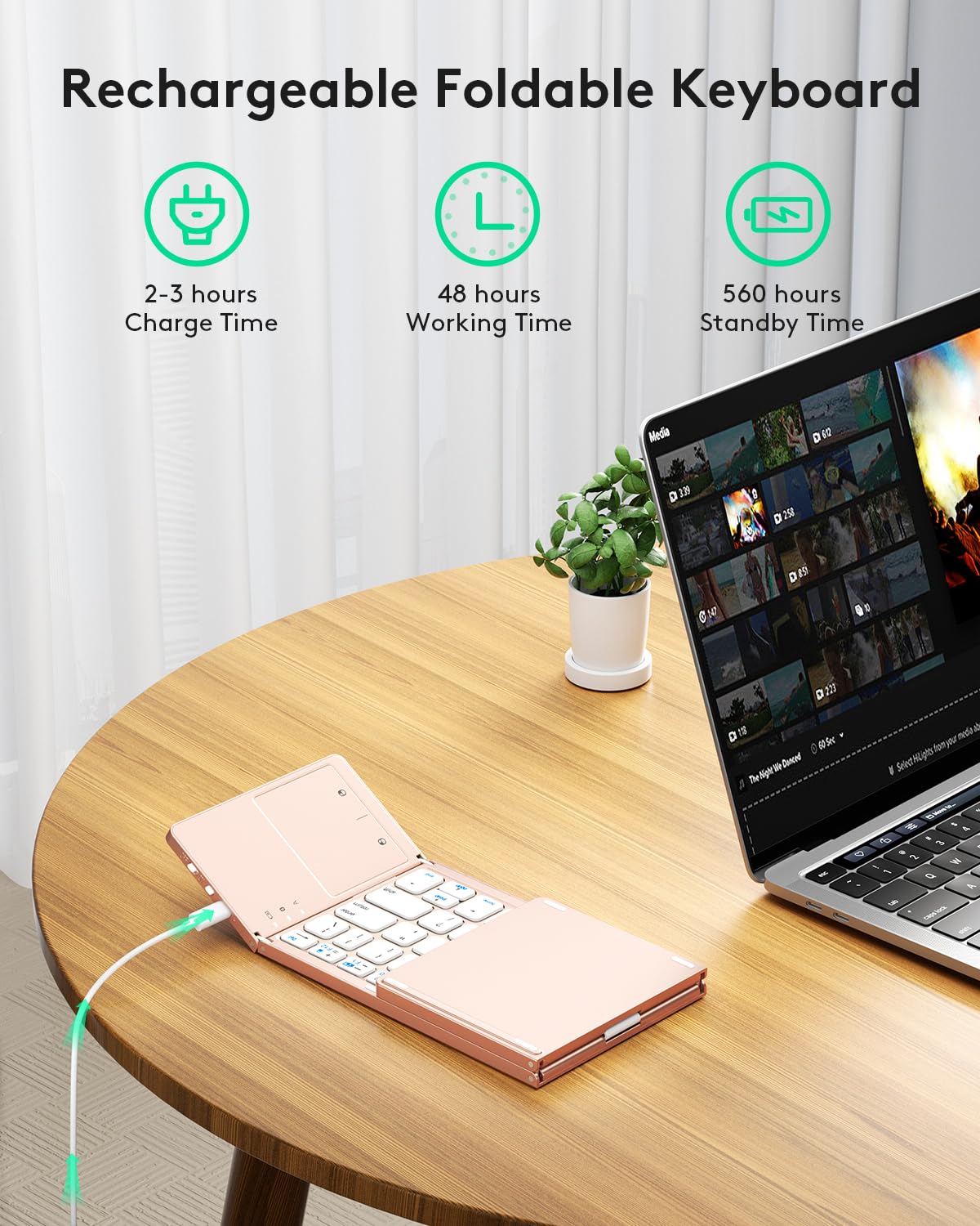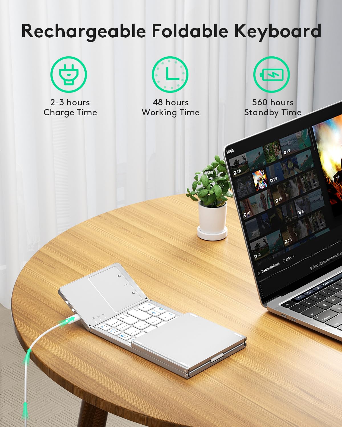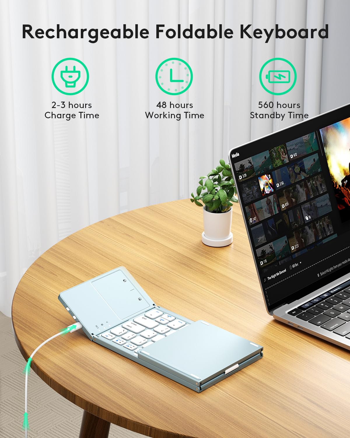 - 【Sensitive Touchpad Foldable Keyboard】Upgrade sensitive touchpad supports multi-touch, so you can control the device without using mouse. More convenient and efficient! (NOTE: IOS 13.4 and below or Android 3.0 and below are not supported!!!) Built-in rechargeable battery can last for 48 hours or 560 hours after 2-3 hours of charging. One full charge last enough for your short business trip or vacation!