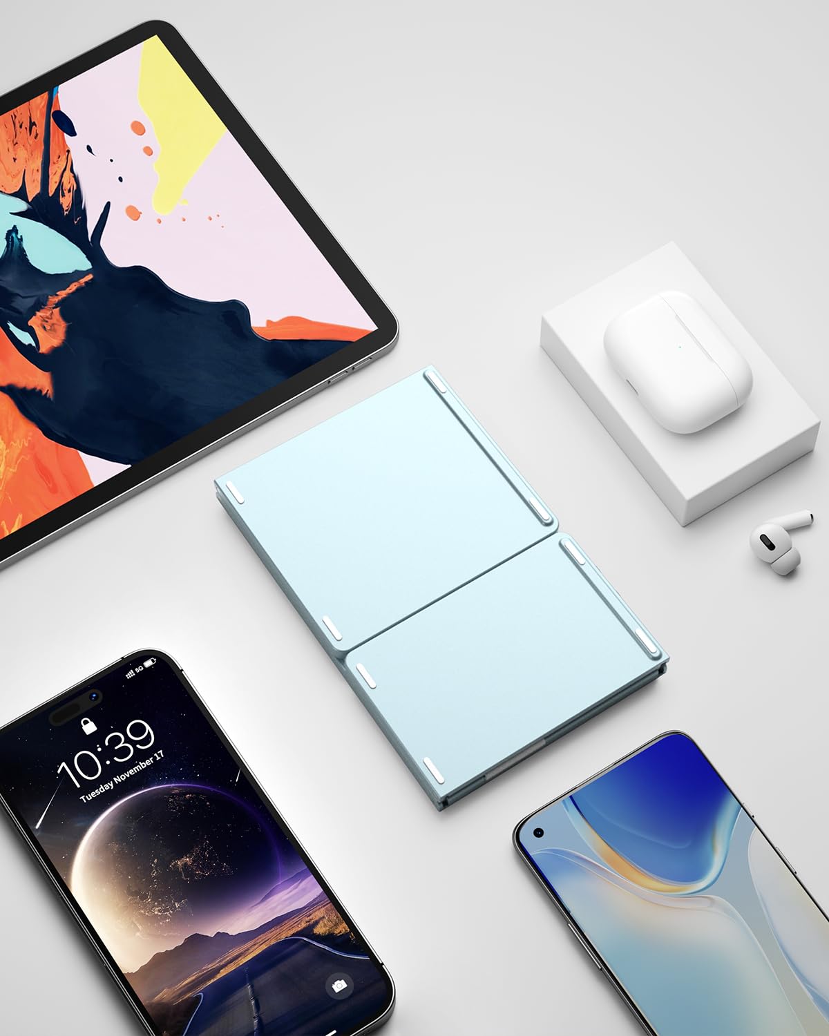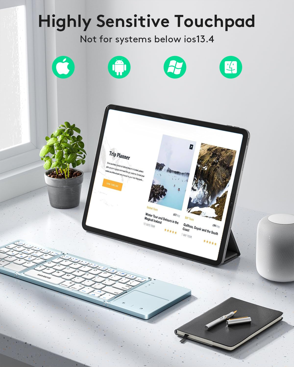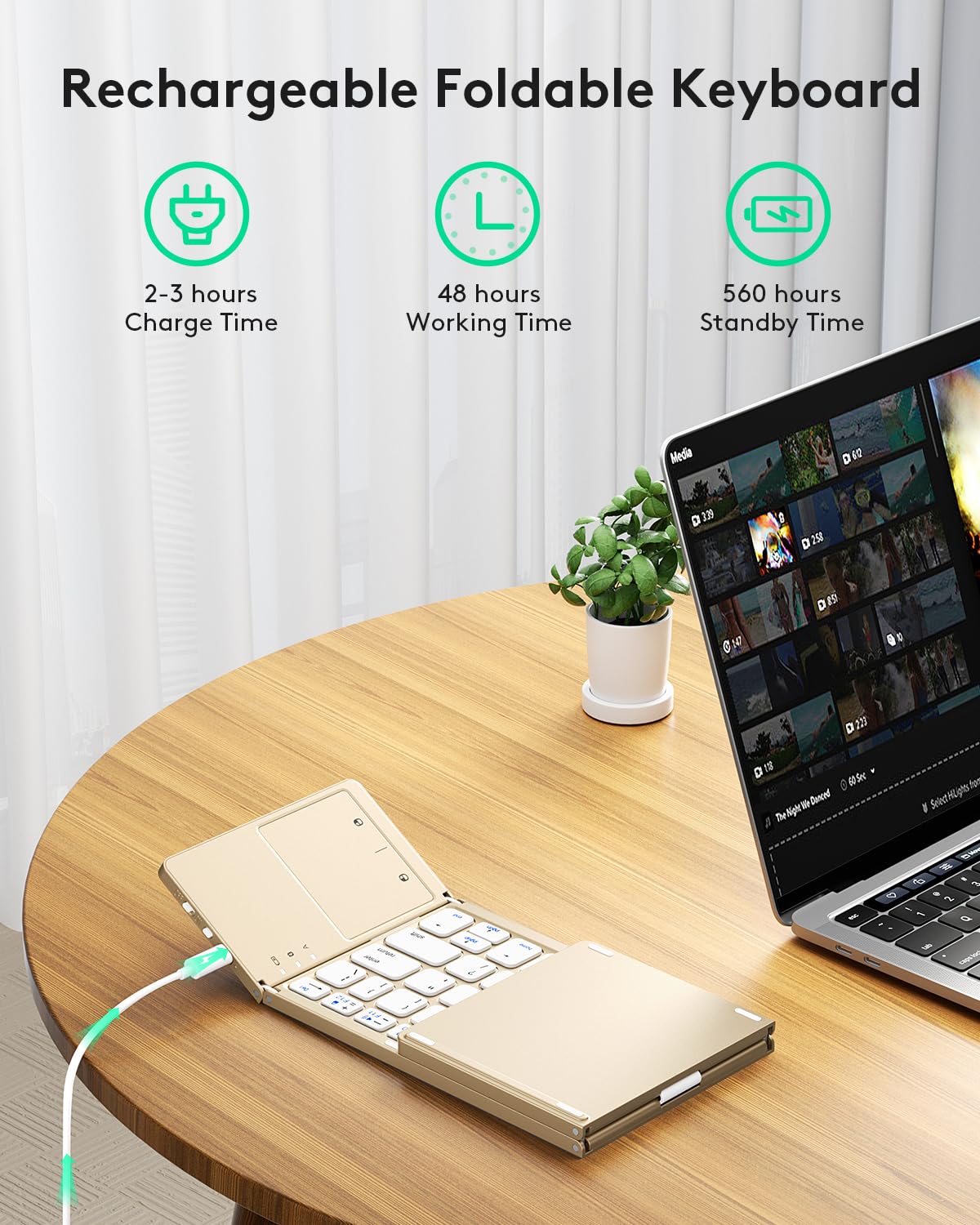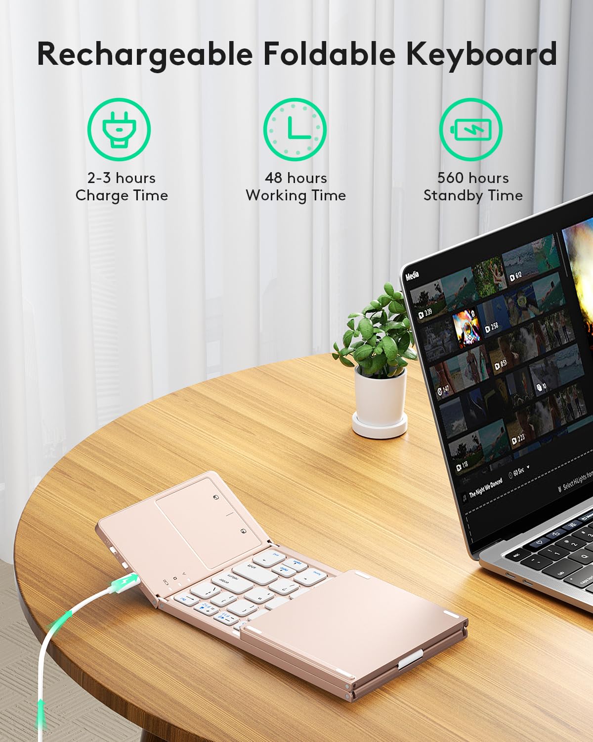 - 【Sensitive Touchpad Foldable Keyboard】Upgrade sensitive touchpad supports multi-touch, so you can control the device without using mouse. More convenient and efficient! (NOTE: IOS 13.4 and below or Android 3.0 and below are not supported!!!) Built-in rechargeable battery can last for 48 hours or 560 hours after 2-3 hours of charging. One full charge last enough for your short business trip or vacation!