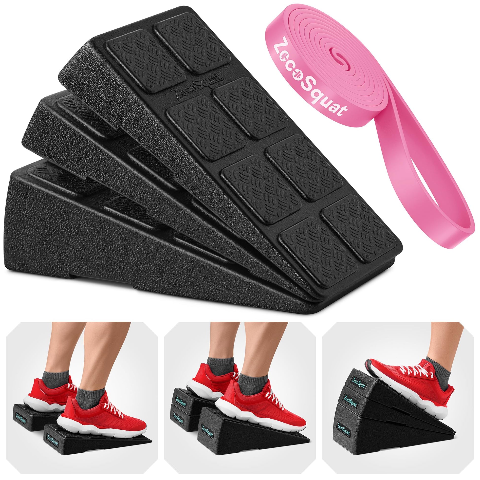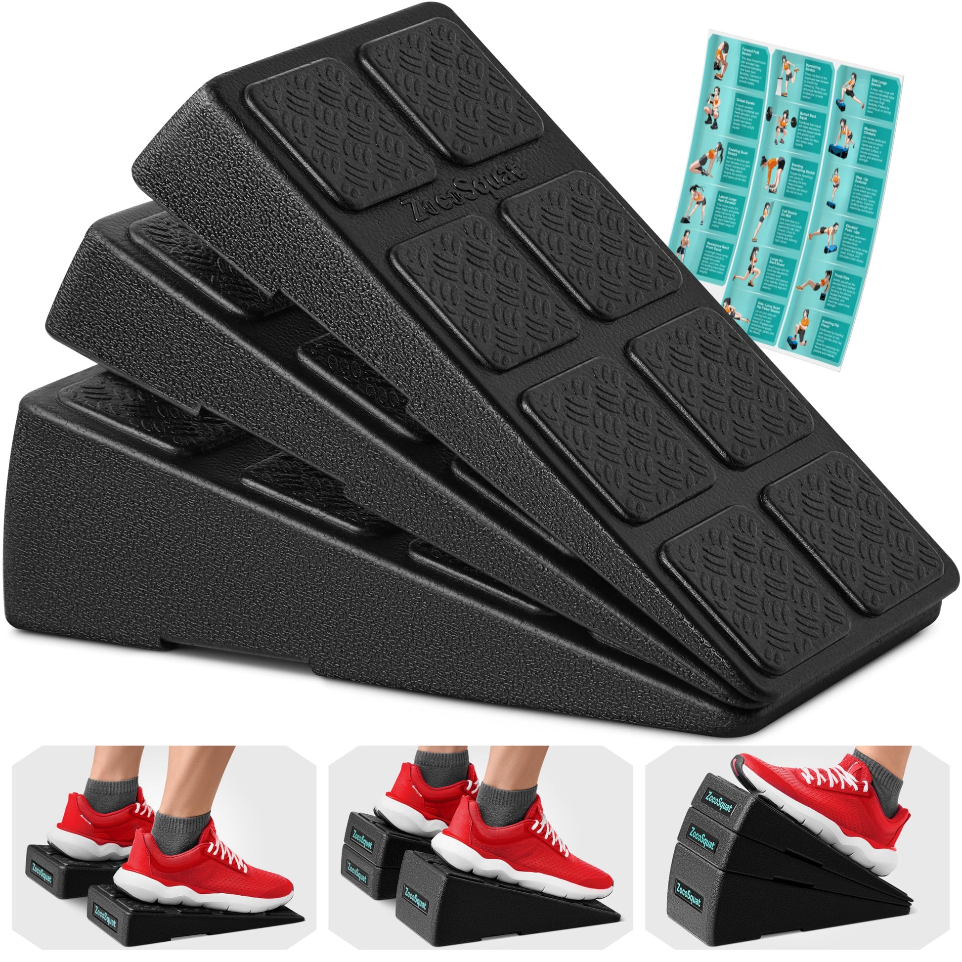 - UNIVERSAL AND PORTABLE. Exercising with a calf stretch wedge works equally for beginners, advanced athletes, and people in physical therapy. Light and compact, this set becomes your portable squat board for the home, gym, and even outdoors alike