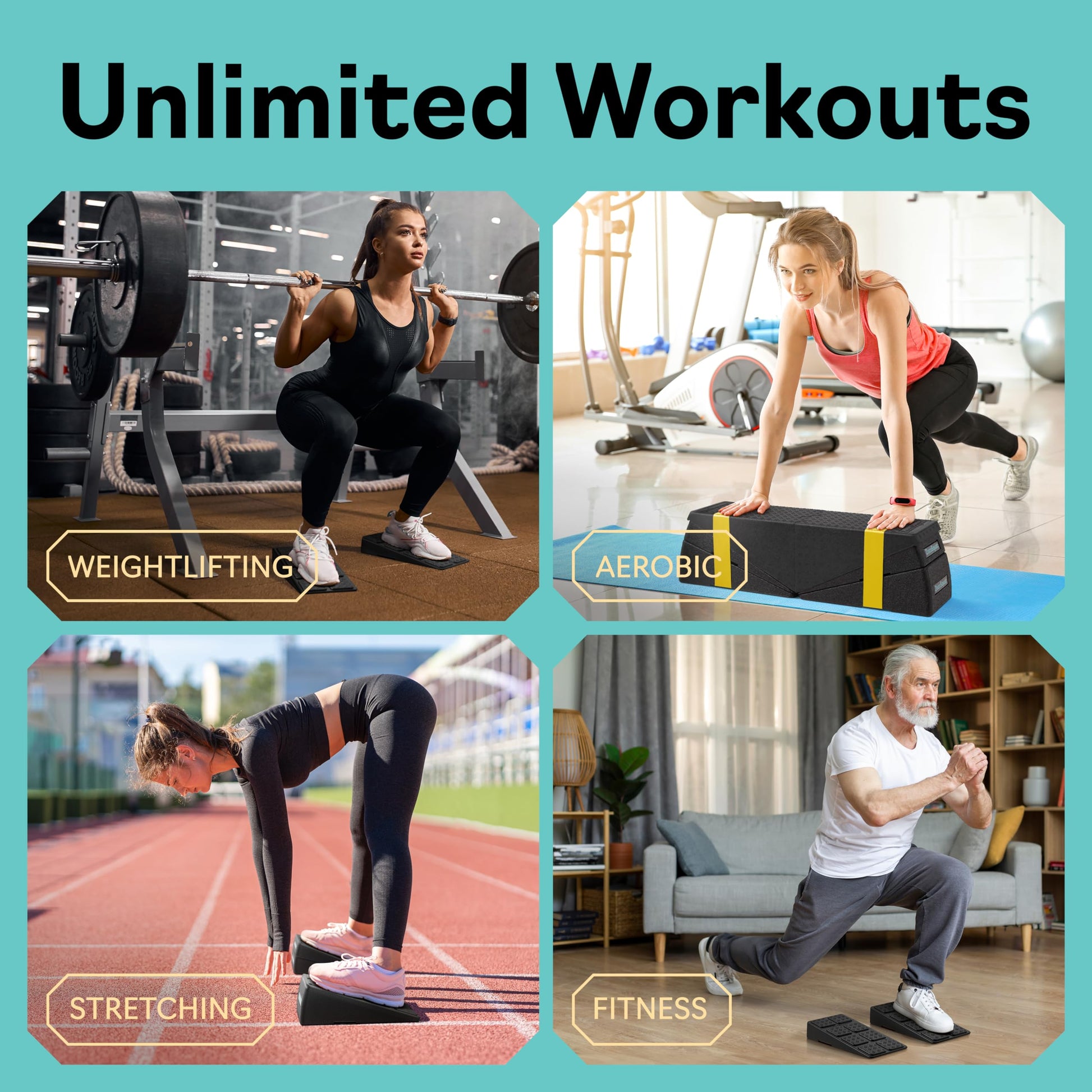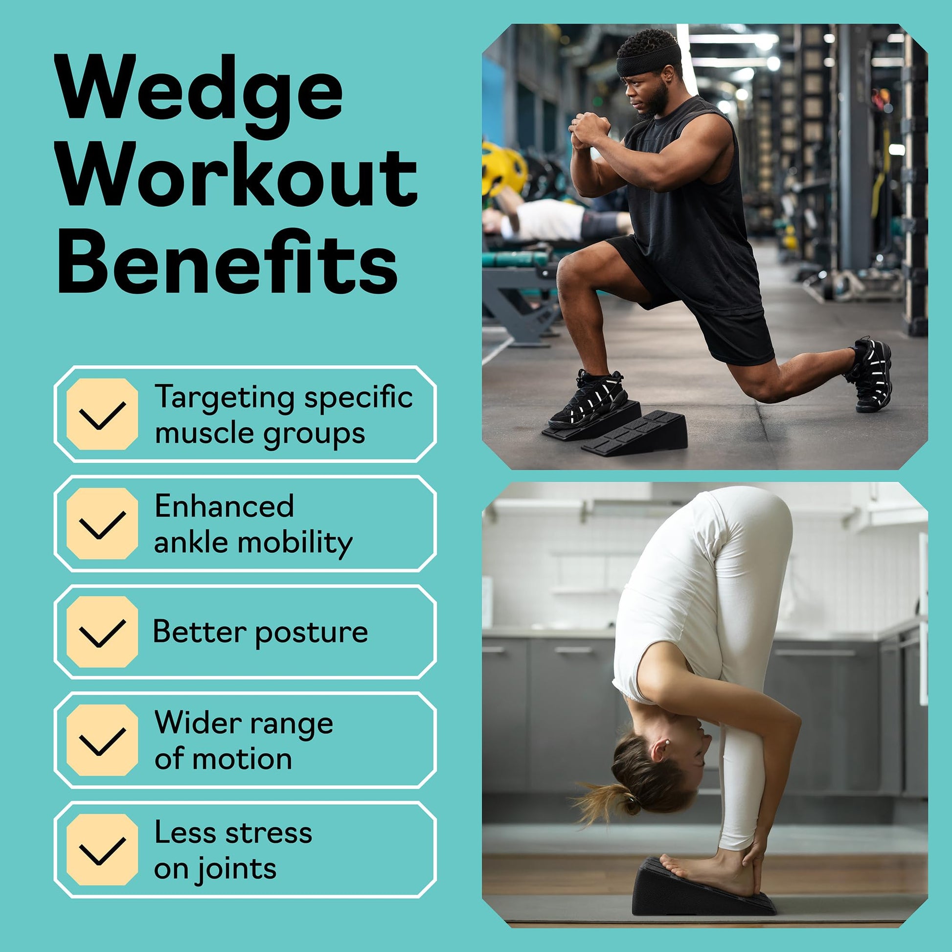 - UPGRADED WORKOUTS. With a squat blocks wedge set, you enhance ankle mobility and put less pressure on your joints. It’s not only for a calf workout: the wedges improve your posture and help intensify your regular training for better results