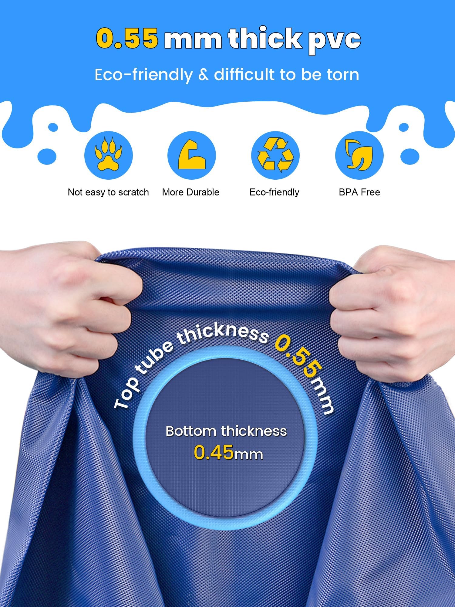 - MORE THICKER MORE DURABLE: The dog splash pad is 0.55 mm thick, more durable than 0.25 mm pads, allowing pets and children to play without damage. Tip: Trim pets' nails before use
